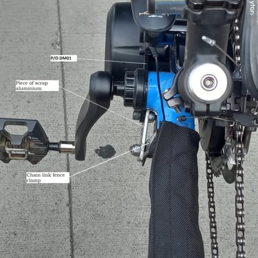 In 2017 I made the decision that as I was getting older it was becoming harder to achieve the rides that I was used to and decided to investigate the addition of electric assistance to the LoGo. I quickly realized that I wanted a system which required an input from me (torque assist) rather than one which kicked in at a set level when you moved the pedal (cadence sensing). I also determined that whatever I bought had to use the gearing on the trike which meant a mid-drive motor and not a hub drive motor. At the time, just about the only thing I could find which fit this requirement was the TongSheng TSDZ2. I purchased a 52V 750W version of the TSDZ2 which was sold as a recumbent trike kit (had cable extenders to make up for the longer distances associated with a recumbent trike). The install was fairly easy but there are a couple of things to take into account. The mid-drive motor wants to rotate (caused by the motor torque) in a clockwise direction (when viewed from the left) and must be restrained in some manner (the hardware which is on the motor (around the crank shaft) will slow this effect but will not totally stop it. The dealer where I bought my motor from was including a P-clamp to put around the boom and then secure to the motor using the bolt on the TSDZ2 which was originally to fasten the motor to a bicycle frame (clamp between the chain stays and bottom bracket). I found that over time the P-clamp could fail as it would flex slightly with motor application of power and installed a tensioner clamp from a chain link fence (available in different sizes to accommodate boom diameter) which is much thicker and not susceptible to the flexing. This change also required the addition of a small piece ( 2-3 inches) of scrap metal (from a Simpson Strong Tie mending strap) to allow for the distance between the clamp and bolt location on the TSDZ2. When I switched to a Toseven DM01 I used the same system but as there was no attachment point on the motor case like the TSDZ2. I installed the metal strap to the unused hole in the mounting plate on the left side of the crank.
